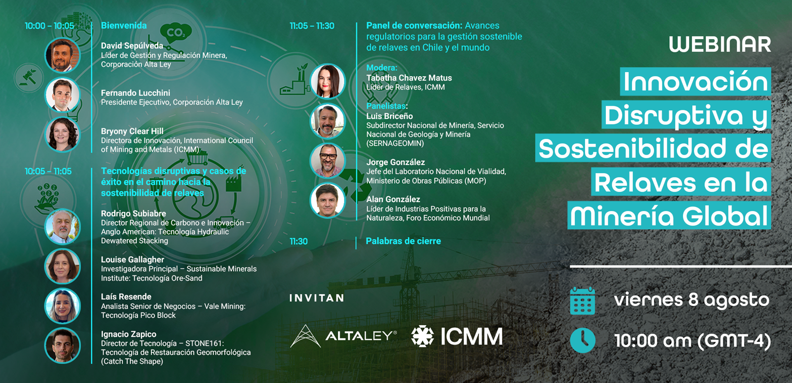 Alta Ley e ICMM organizan webinar sobre innovación disruptiva y sostenibilidad de relaves en minería